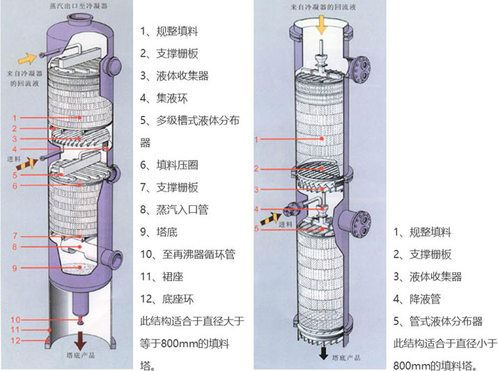 規(guī)整填料塔的分離性能取決于內(nèi)件,即填料、分布器、收集器等。同時也取決于許多參數(shù),如氣體負(fù)荷、液體負(fù)荷、物料性質(zhì)、操作壓力、填料濕潤性能和液體分布不均勻等等。至今不能由填料的幾何形狀來精確計算塔的分離性能,需要通過填料塔的理論和不同條件下通過試驗塔來測定準(zhǔn)確數(shù)據(jù)。用戶可根據(jù)資料以一級近似程度確定塔的尺寸和需要的填料高度。如果需要經(jīng)濟、合理的結(jié)構(gòu)形式,我廠愿與用戶密切合作。